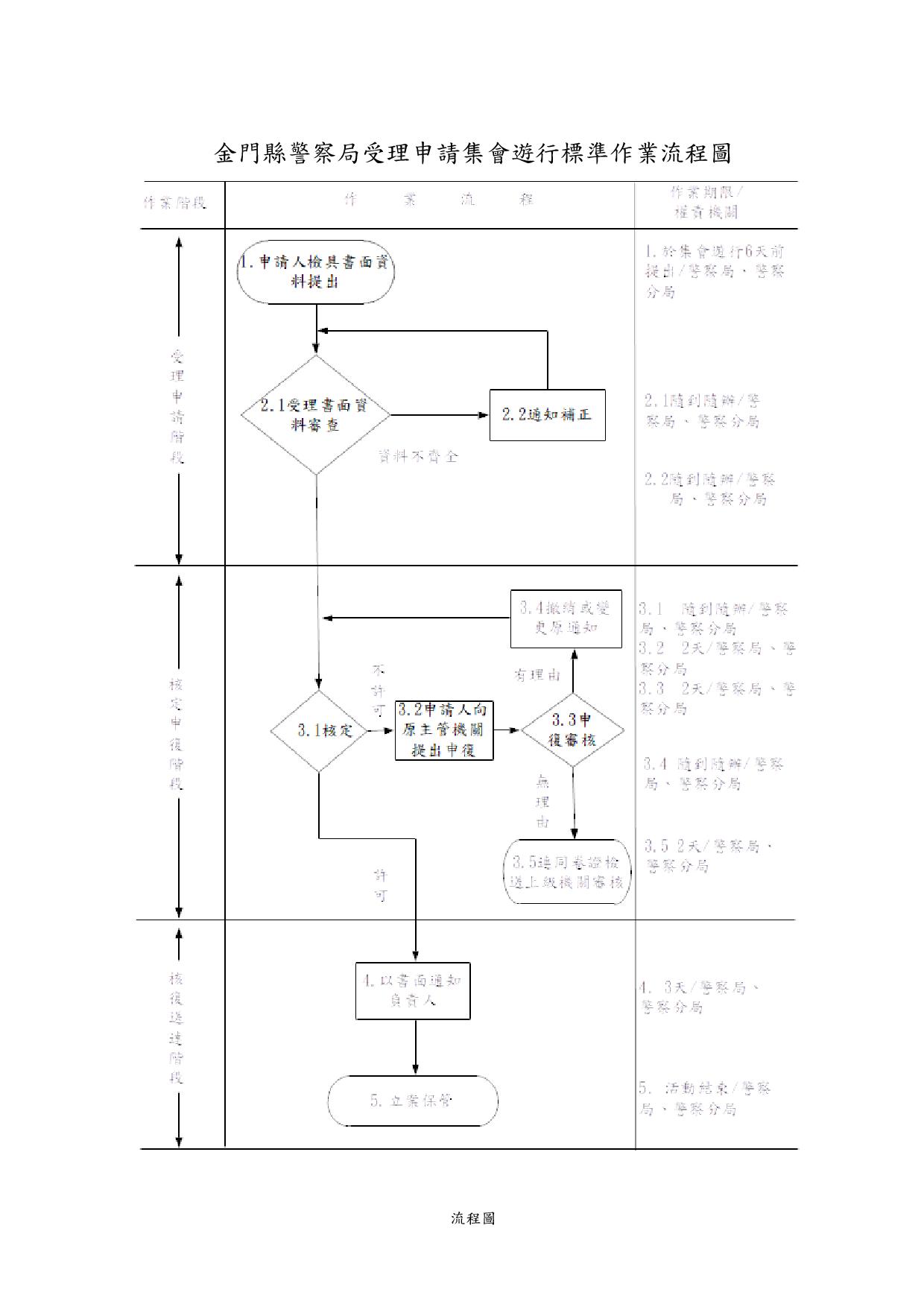 金門縣警察局集會遊行標準作業流程圖